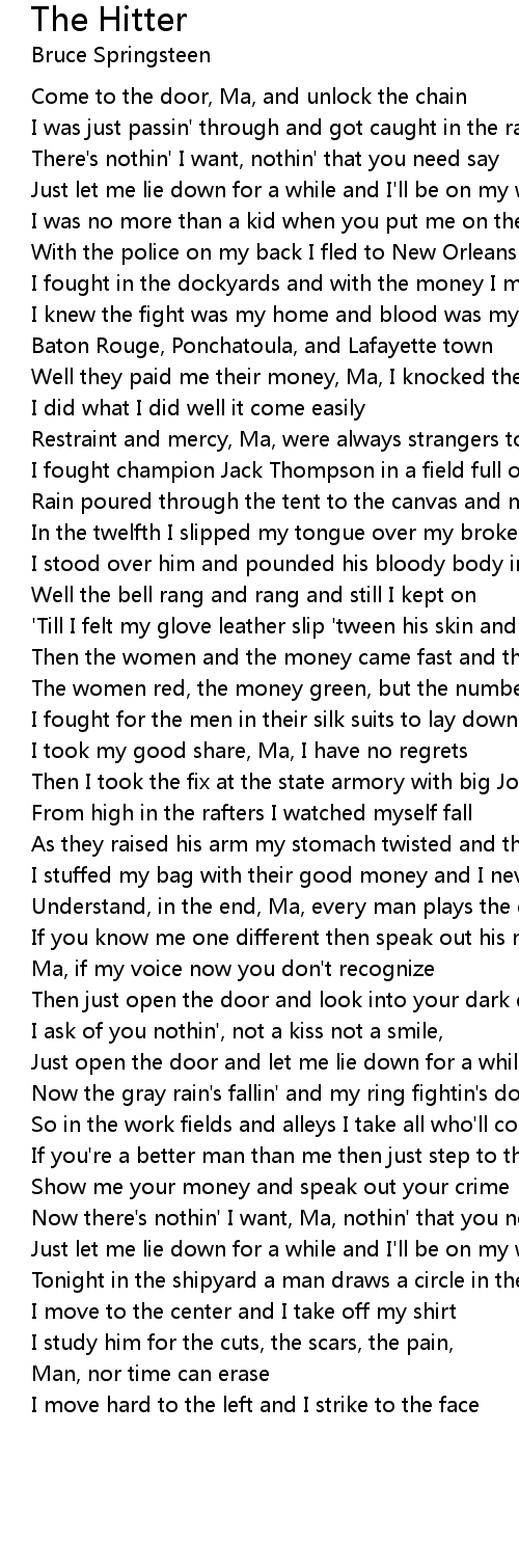 Now there's nothin' I want, Ma, nothin' that you need say |