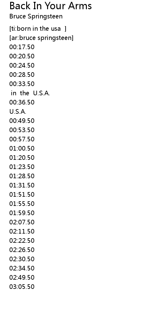 [00:31.53]00:33.50]00:45.50]01:05.50]01:12.50]02:39.50]02:47.50]02:55.50]02:58.50]03:02.50] Born in the U.S.A.