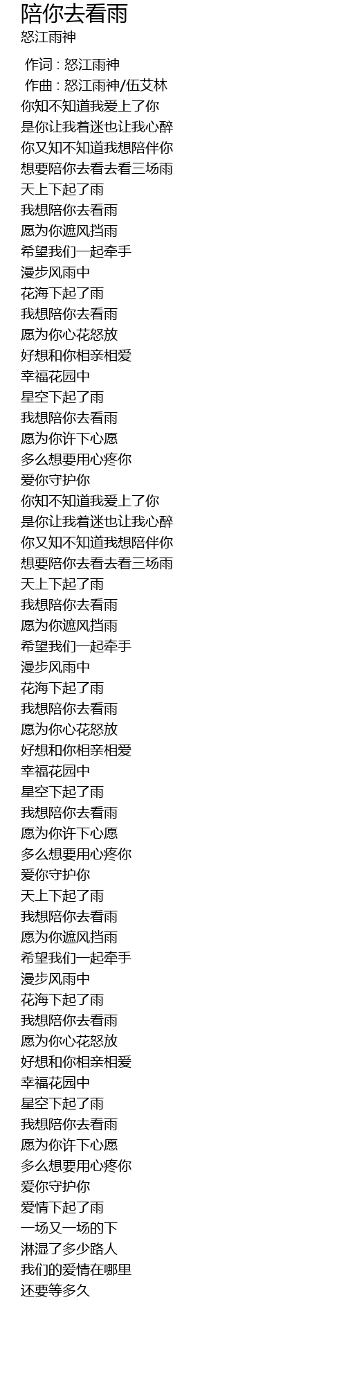 | [03:14.918] | 我想陪你去看雨 |
