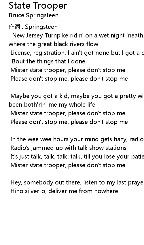 | New Jersey Turnpike ridin' on a wet night ' neath the refinery' s glow, out where the great black rivers flow | |
