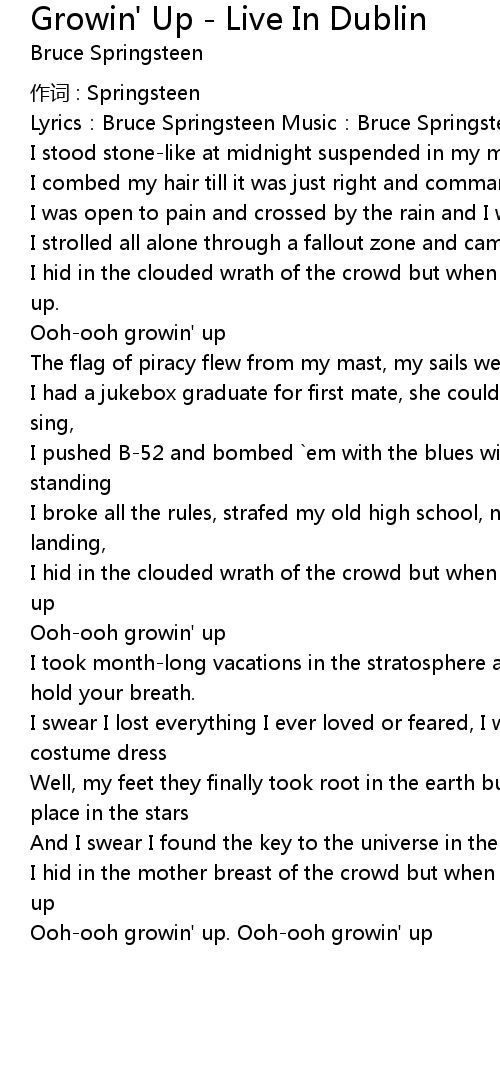 | Ooh-ooh growin' up. Ooh-ooh growin' up |