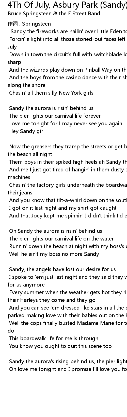 | Song | 4Th Of July, Asbury Park (Sandy) - Live |