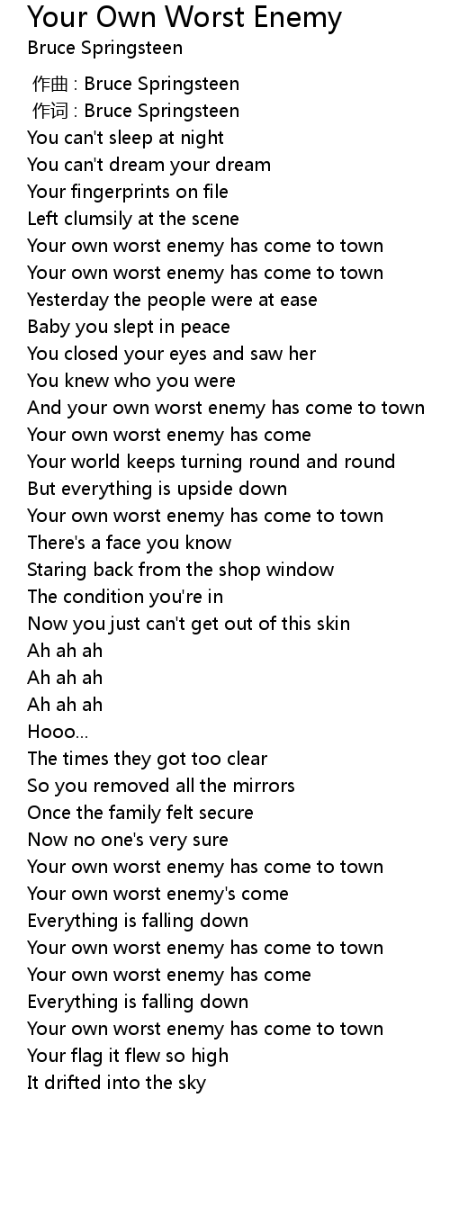 | Song | Your Own Worst Enemy |