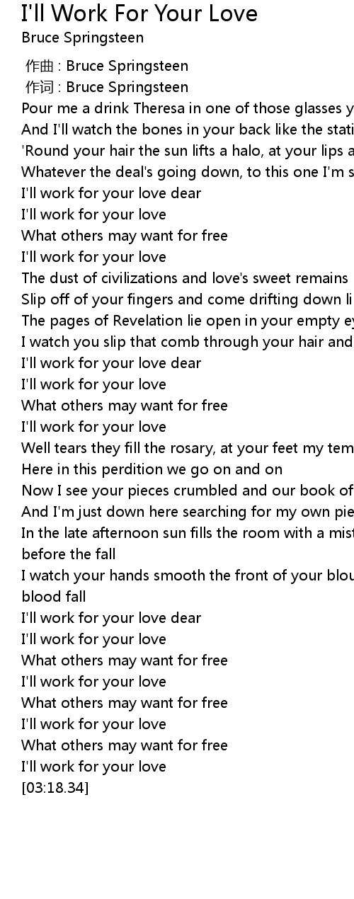 | [00:01.00] | 作词 : Bruce Springsteen |