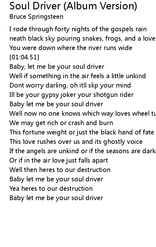 Baby, let me be your soul driver |