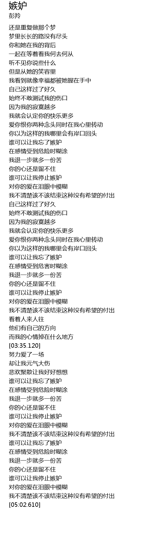 | [04:39.670] | 谁可以让我停止嫉妒 |