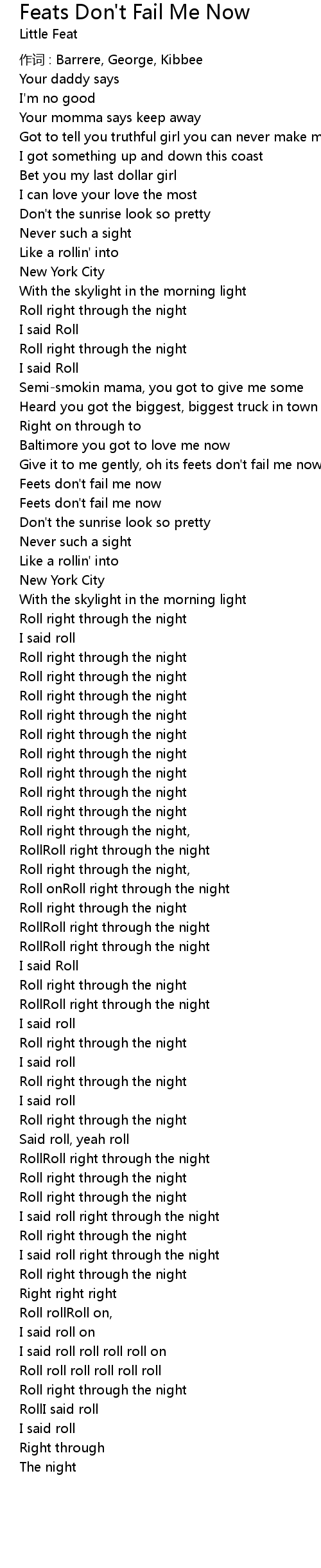 | Roll onRoll right through the night | |