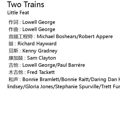 | [00:00.000] | 吉他 : Lowell George/Paul Barrère |