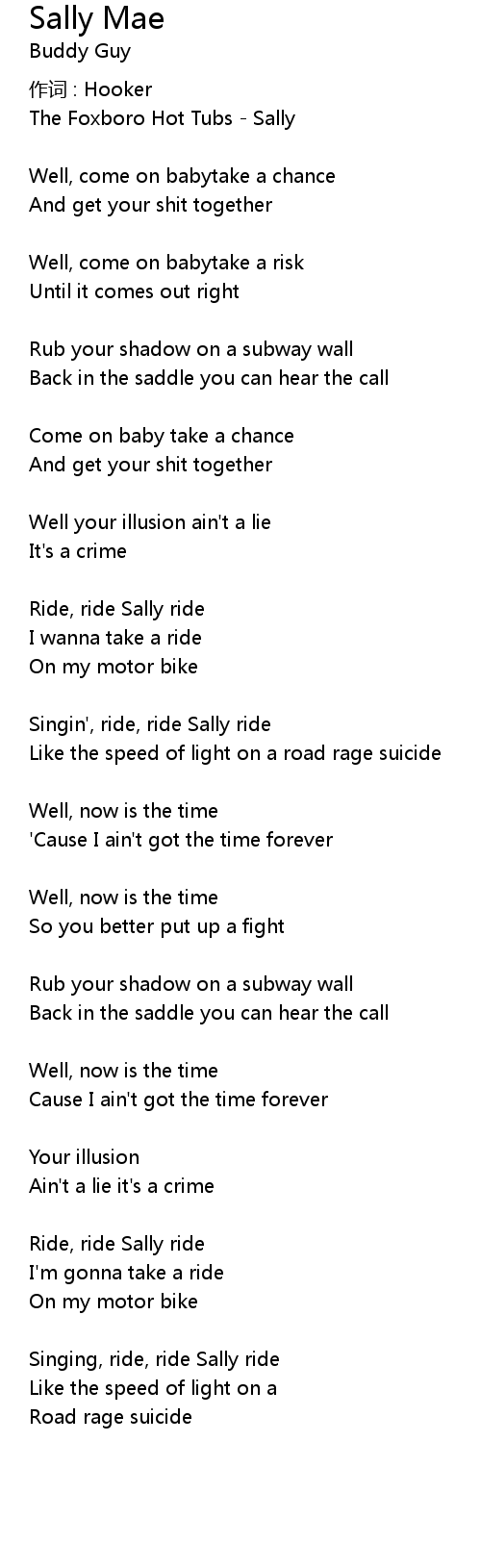 | Singin', ride, ride Sally ride | |