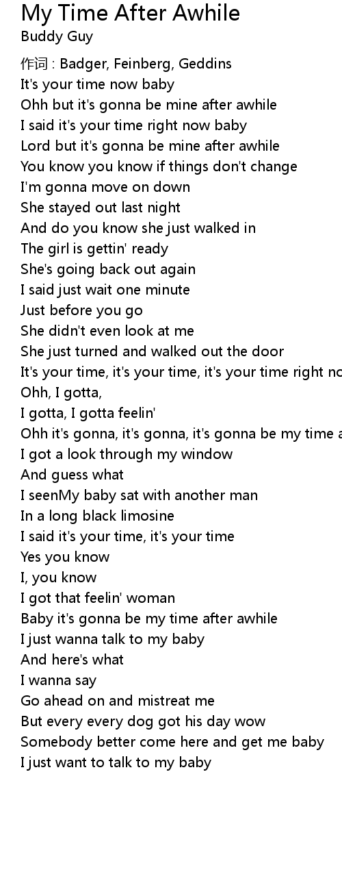 | Baby it's gonna be my time after awhile | |