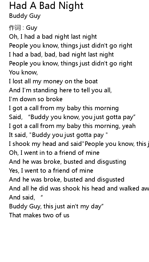 | I had a bad, bad, bad night last night | |