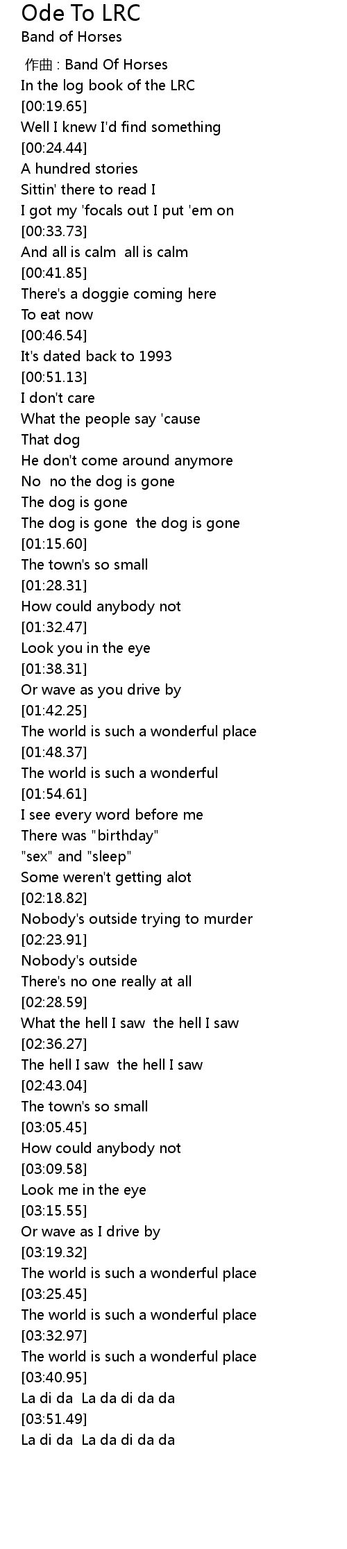 | [00:00.00] | zuo qu : Band Of Horses |
