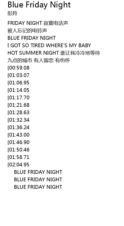 | [03:58.79] | BLUE FRIDAY NIGHT |