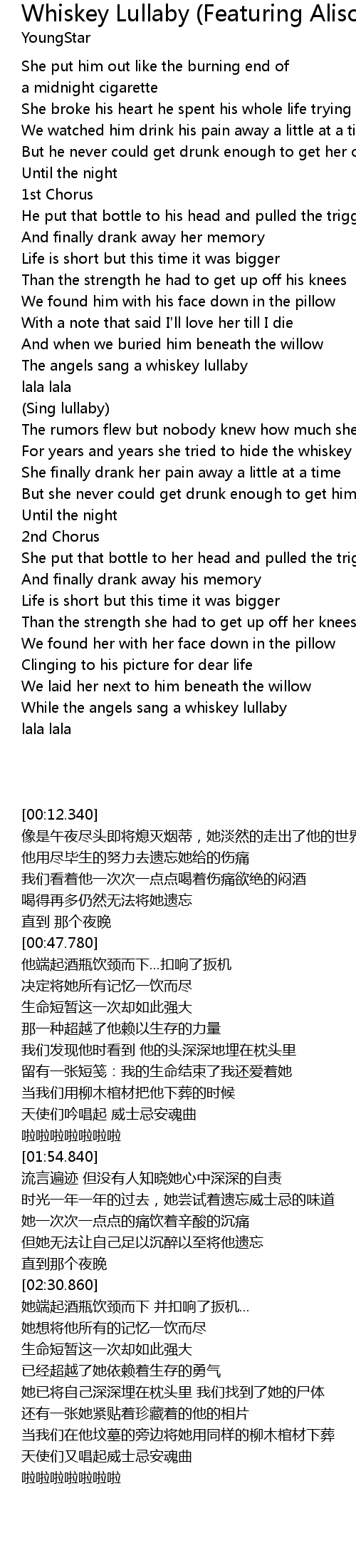 | [01:33.590] | The angels sang a whiskey lullaby |