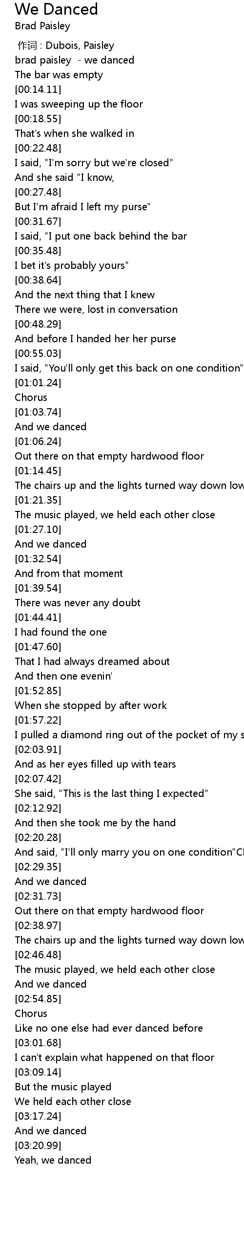 | [00:00.65] | brad paisley - we danced |