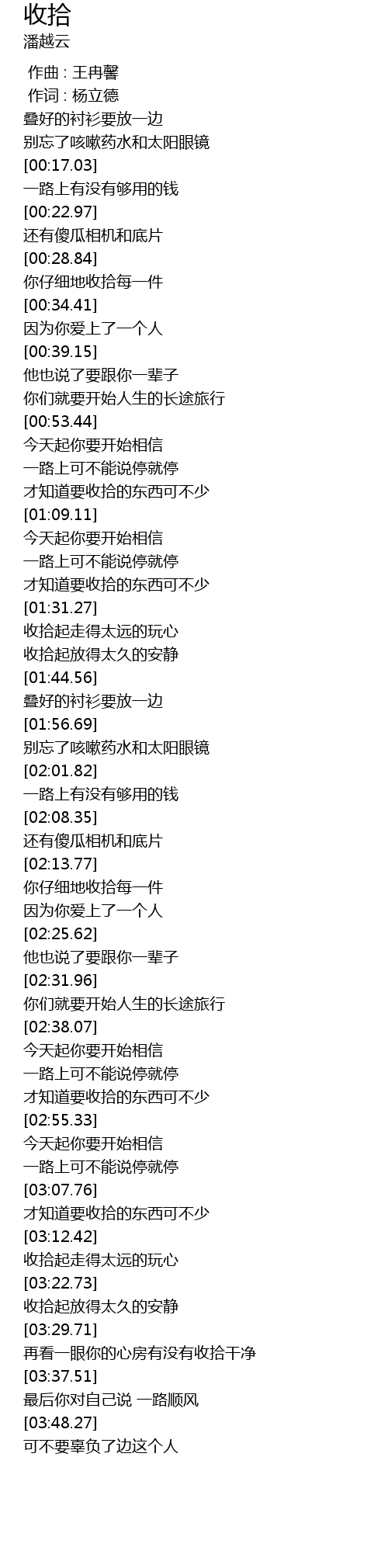 | [03:43.43] | 最后你对自己说 一路顺风 |