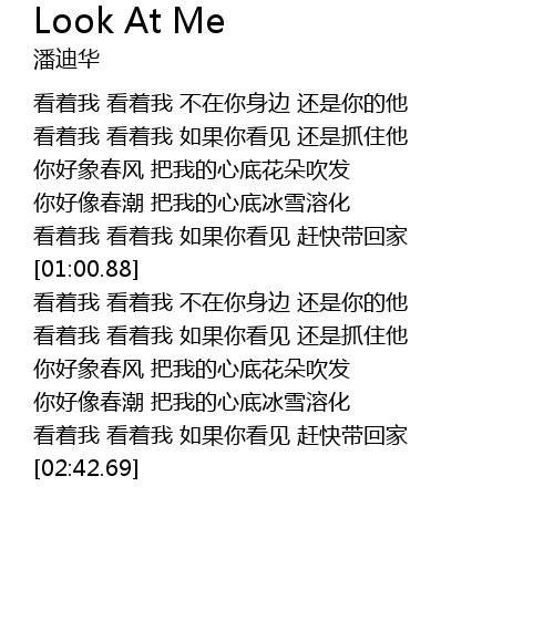 | [02:14.78] | 看着我 看着我 如果你看见 赶快带回家 |