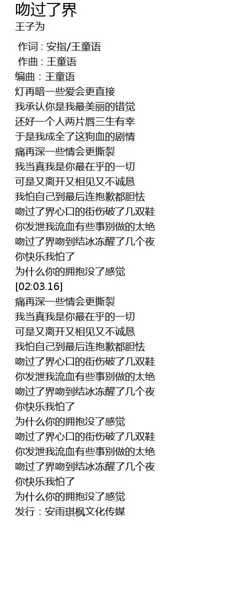 | [03:19.41] | 吻过了界吻到结冰冻醒了几个夜 |