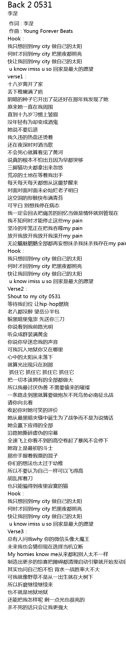 | [02:57.38] | 我只想回到my city 做自己的太阳 |
