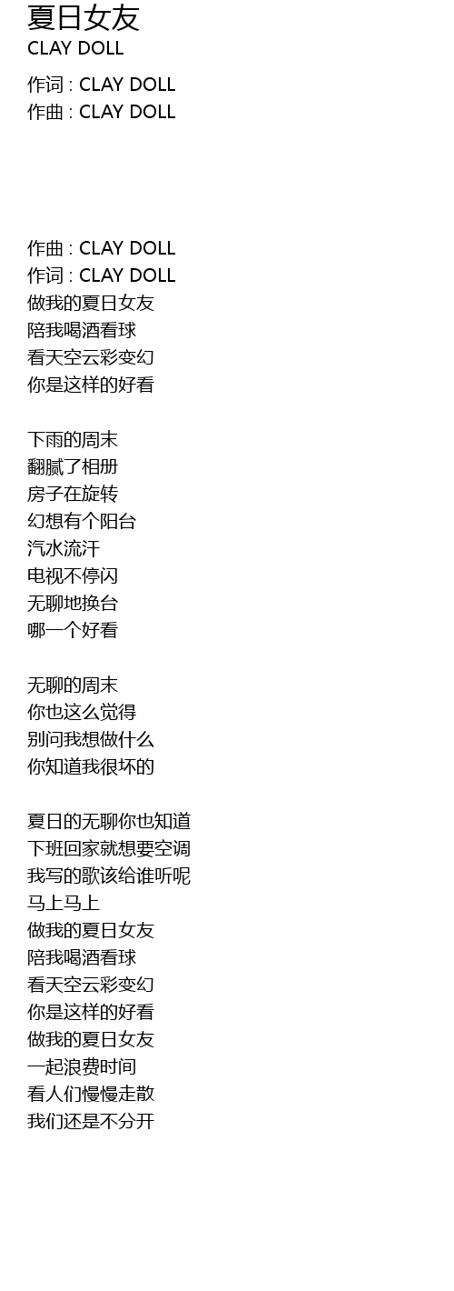 | 作词 : CLAY DOLL | |
