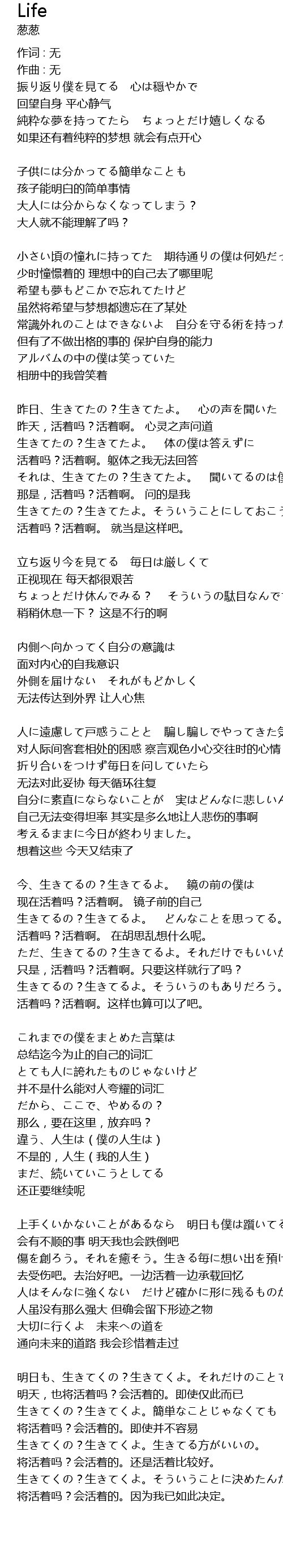 | 活着吗?活着啊。 就当是这样吧。 | |