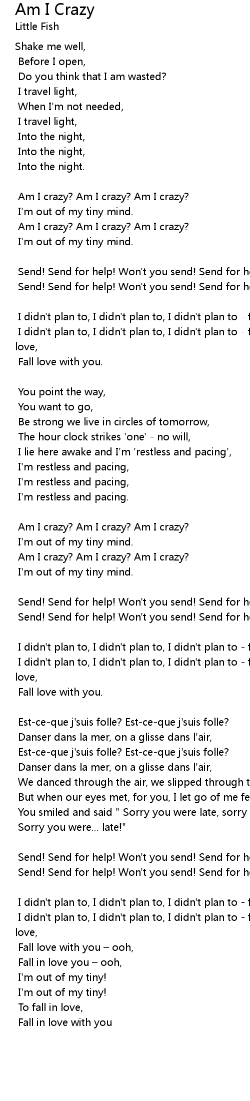 | Am I crazy? Am I crazy? Am I crazy? | |