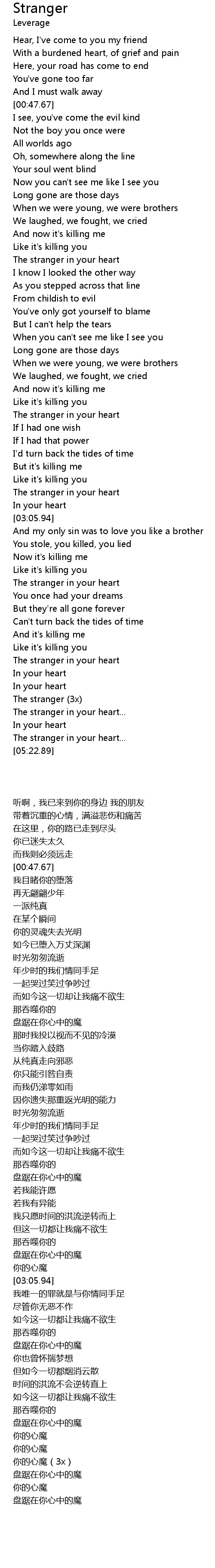 | [04:15.88] | The stranger in your heart |