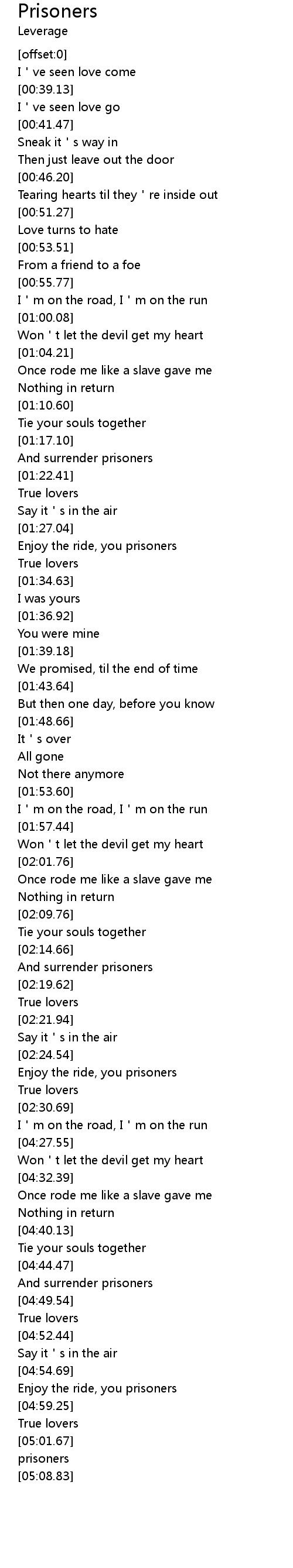 | [01:28.43] | Enjoy the ride, you prisoners |