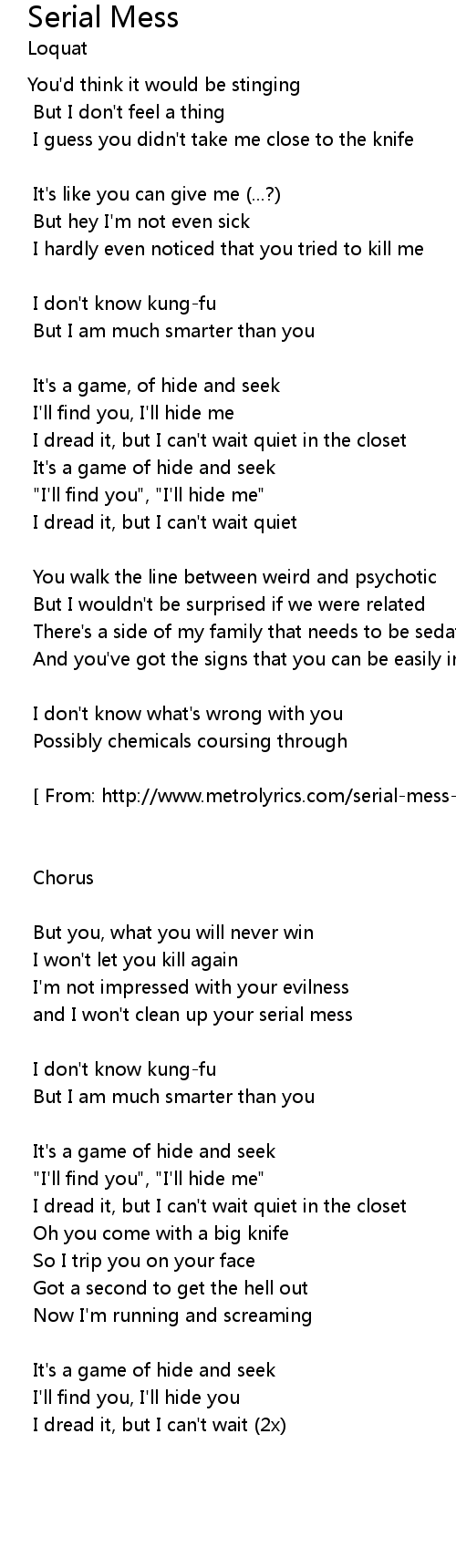 [ From: http://www.metrolyrics.com/serial-mess-lyrics-loquat.html ] |