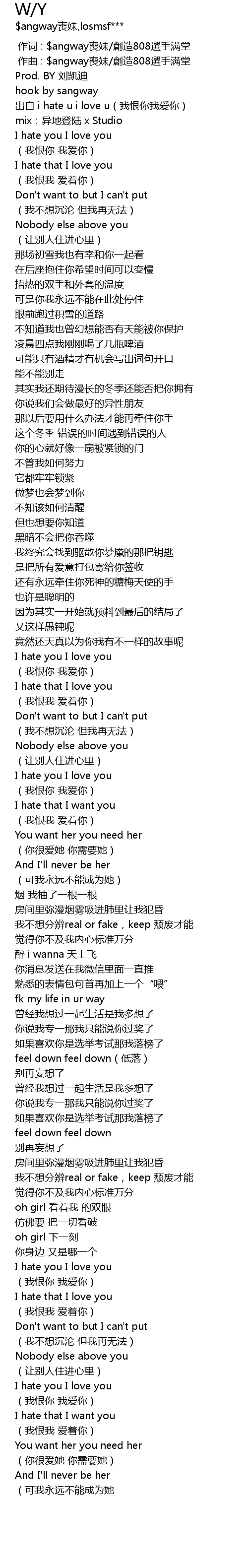 | [01:39.476] | wǒ hèn nǐ wǒ ài nǐ |