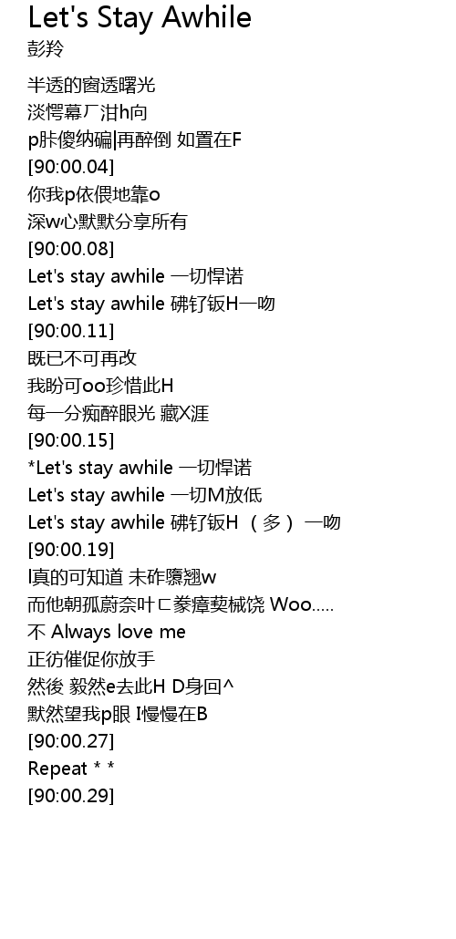 | [90:00.17] | Let's stay awhile 一切M放低 |