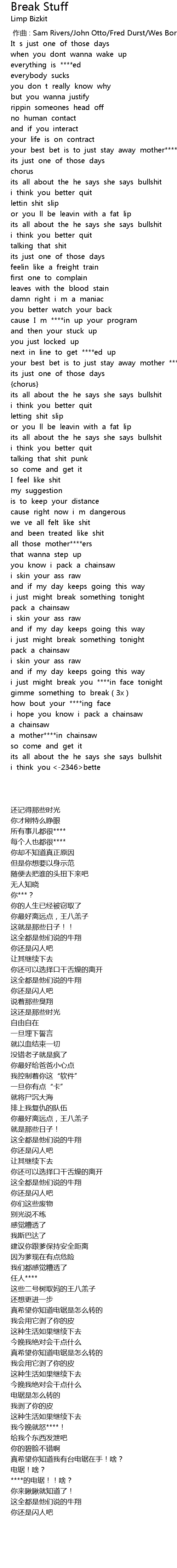 | [00:00.00] | zuo qu : Sam Rivers John Otto Fred Durst Wes Borland |