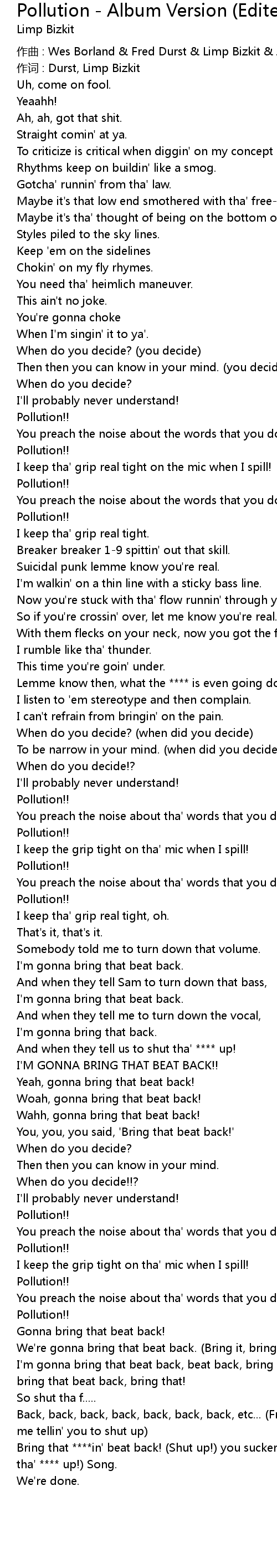 | 作词 : Durst, Limp Bizkit | |