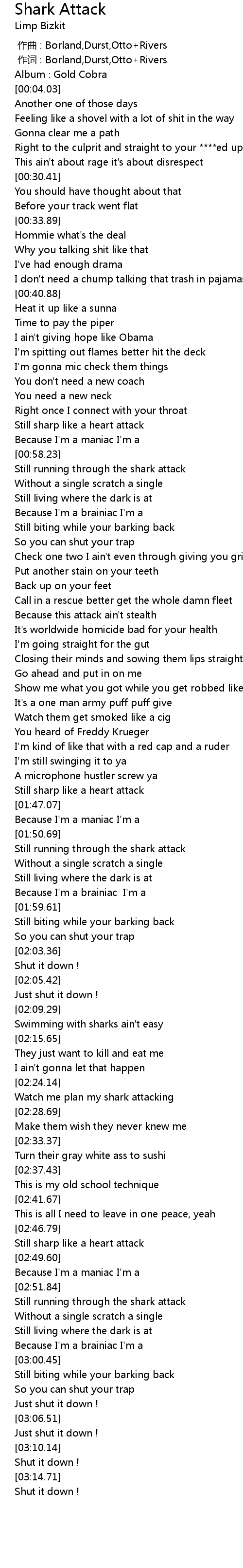 | [02:52.34] | Still running through the shark attack |