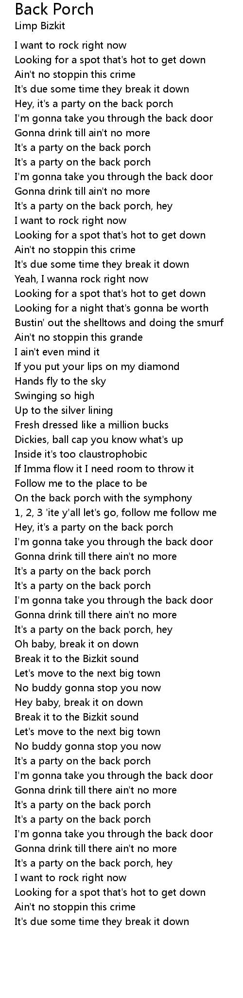 It's a party on the back porch, hey |