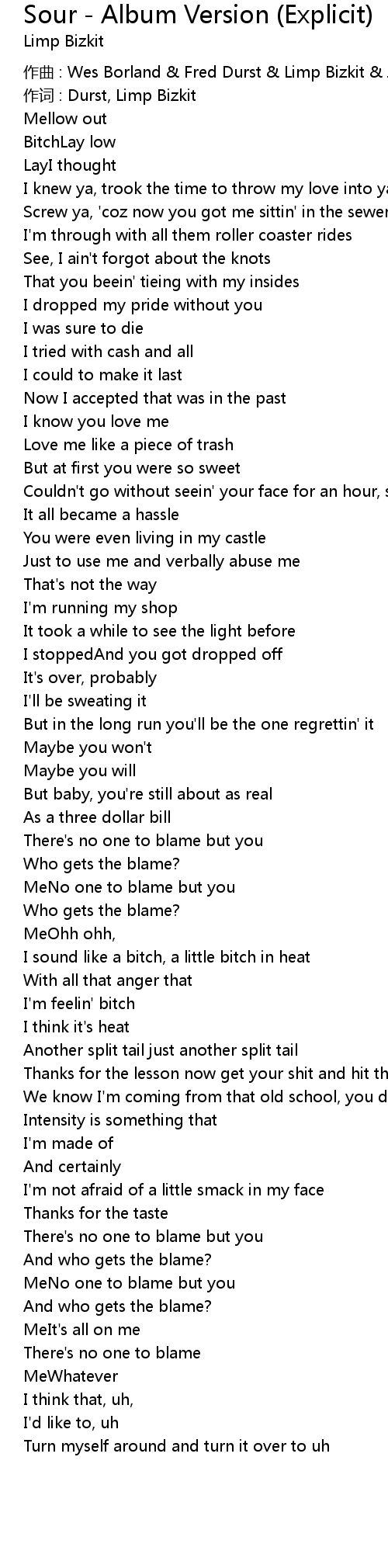 | 作词 : Durst, Limp Bizkit | |