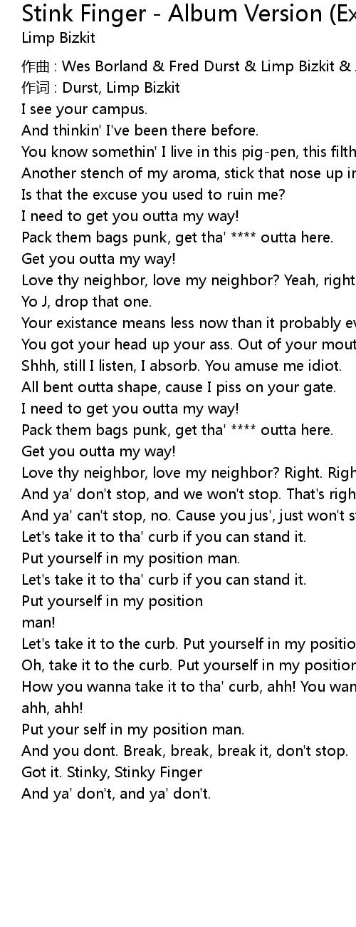 | Song | Stink Finger - Album Version (Explicit) |