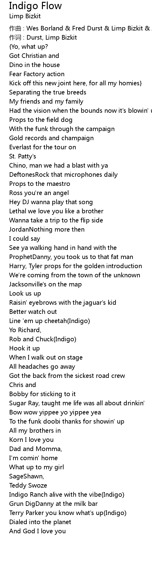 | 作曲 : Wes Borland & Fred Durst & Limp Bizkit & John Otto & Samuel Rivers | |