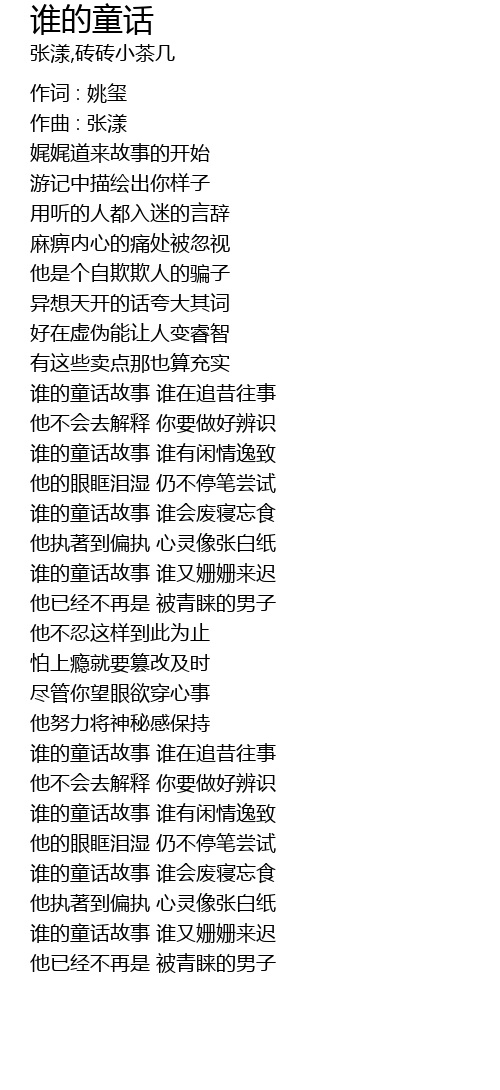 | shuí de tóng huà gù shì shuí yòu shān shān lái chí | |