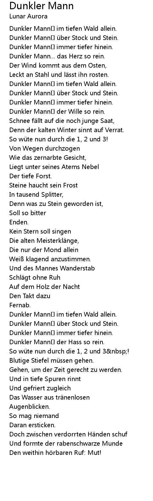 | Song | Dunkler Mann |