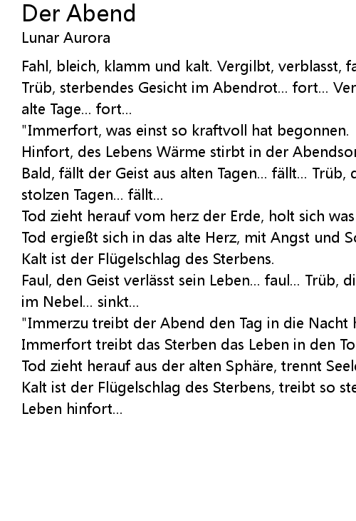 | "Immerzu treibt der Abend den Tag in die Nacht hinein. | |