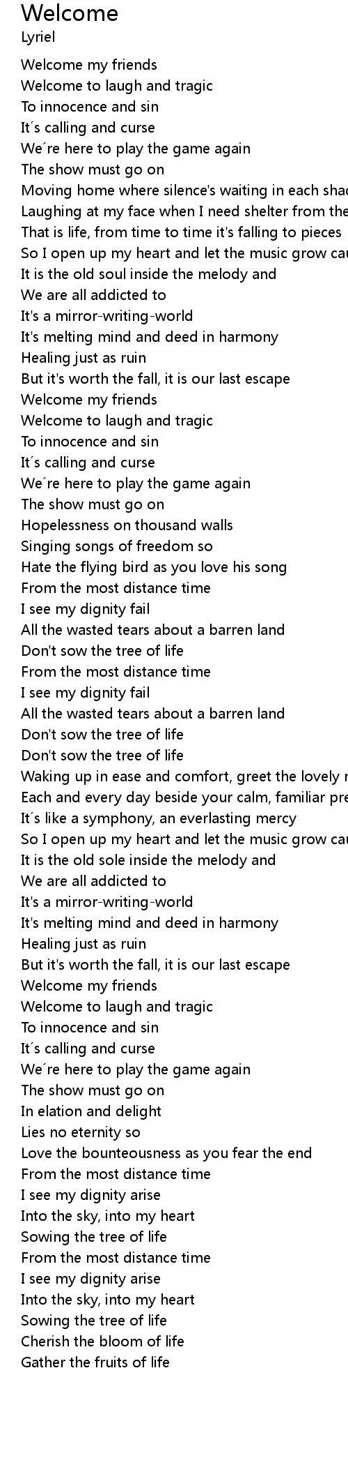 | Song | Welcome |
