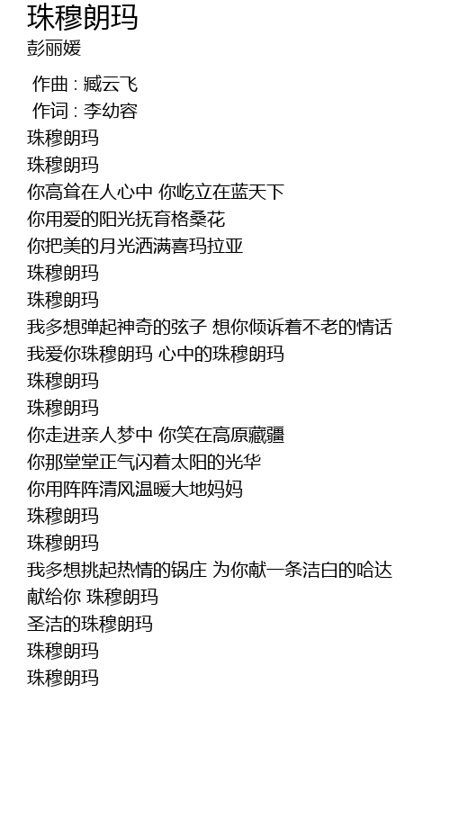 | [03:51.700] | 献给你 珠穆朗玛 |
