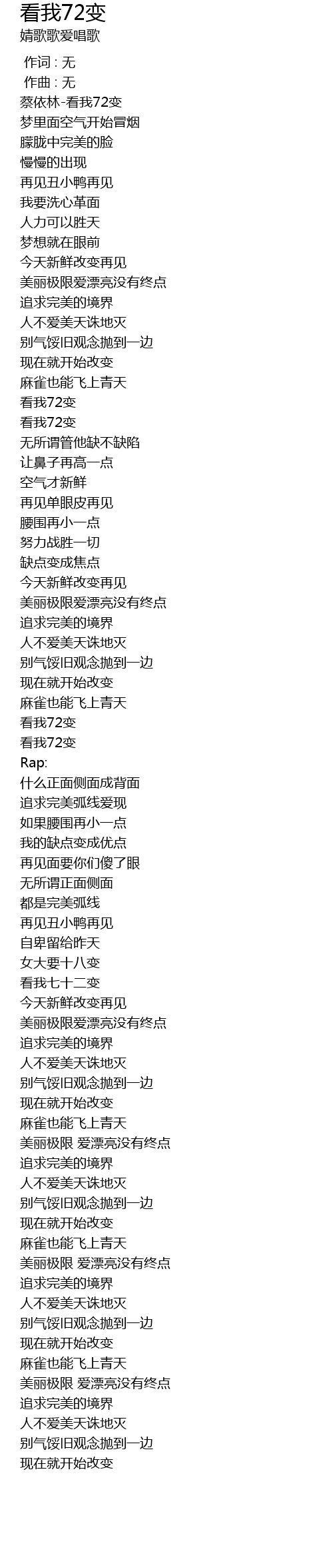 | [00:28.430] | cài yī lín kàn wǒ 72 biàn |