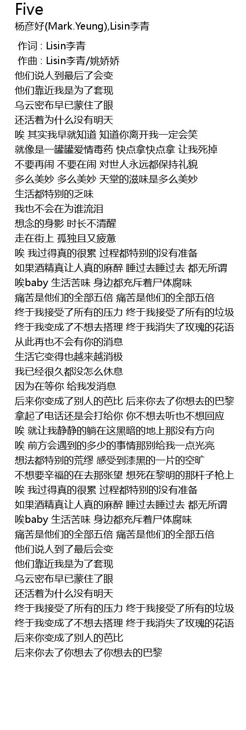 | [01:03.877] | 唉baby 生活苦味 身边都充斥着尸体腐味 |