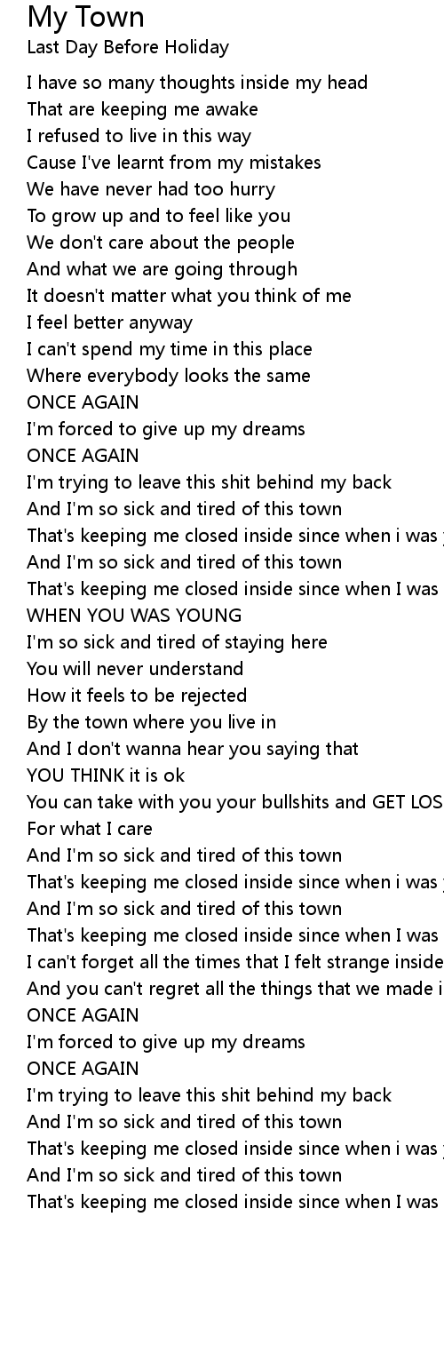 And I'm so sick and tired of this town |