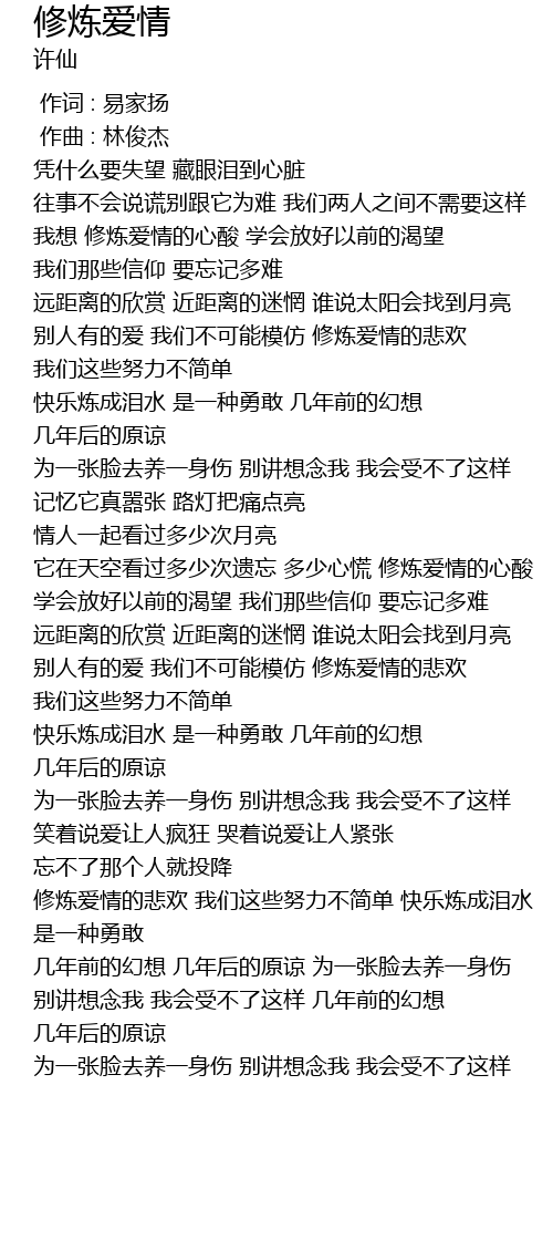 | [00:46.696] | wo xiang xiu lian ai qing de xin suan xue hui fang hao yi qian de ke wang wo men nei xie xin yang yao wang ji duo nan |
