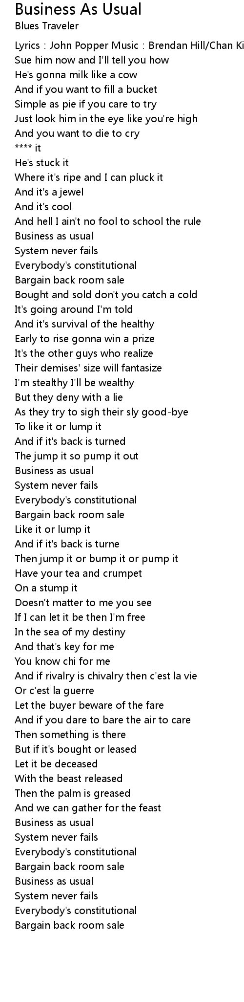 | Song | Business As Usual |