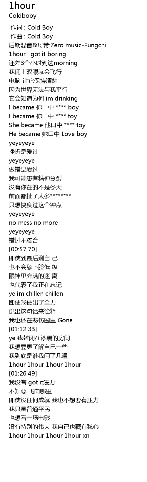| [00:01.000] | zuò qǔ : Cold Boy |