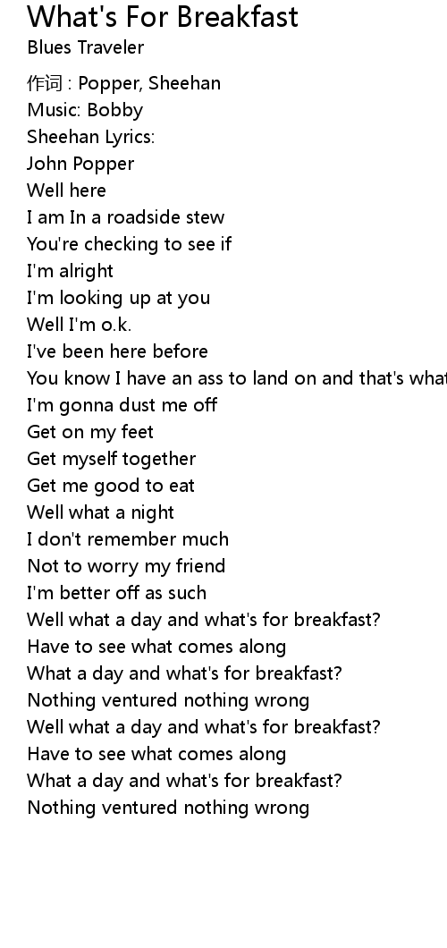 | Song | What's For Breakfast |